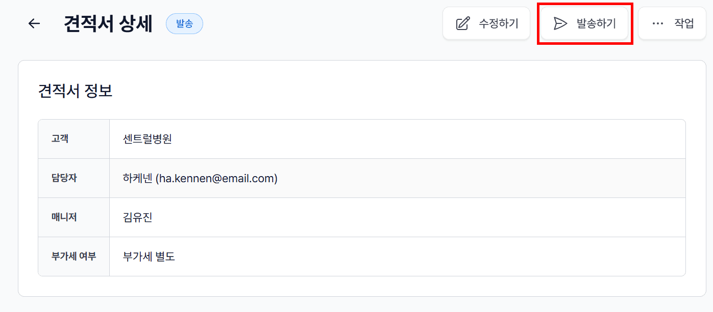 • 견적서 상세 화면에 들어가면 ‘수정하기’ 버튼이 언제나 쉽게 보입니다.