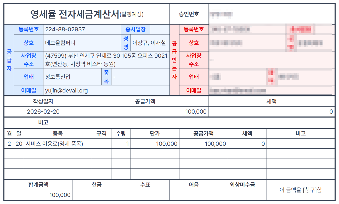 이제 영세율 세금계산서도 청구스 안에서 바로 발행할 수 있어요.아래 링크를 확인해주세요!👉 청구서 작성 가이드 문서Prev이제 채권 추심이 가능합니다!Prev이제 채권 추심이 가능합니다!Prev이제 채권 추심이 가능합니다!