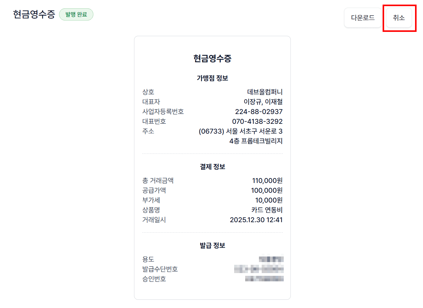 현금영수증 → 취소 처리